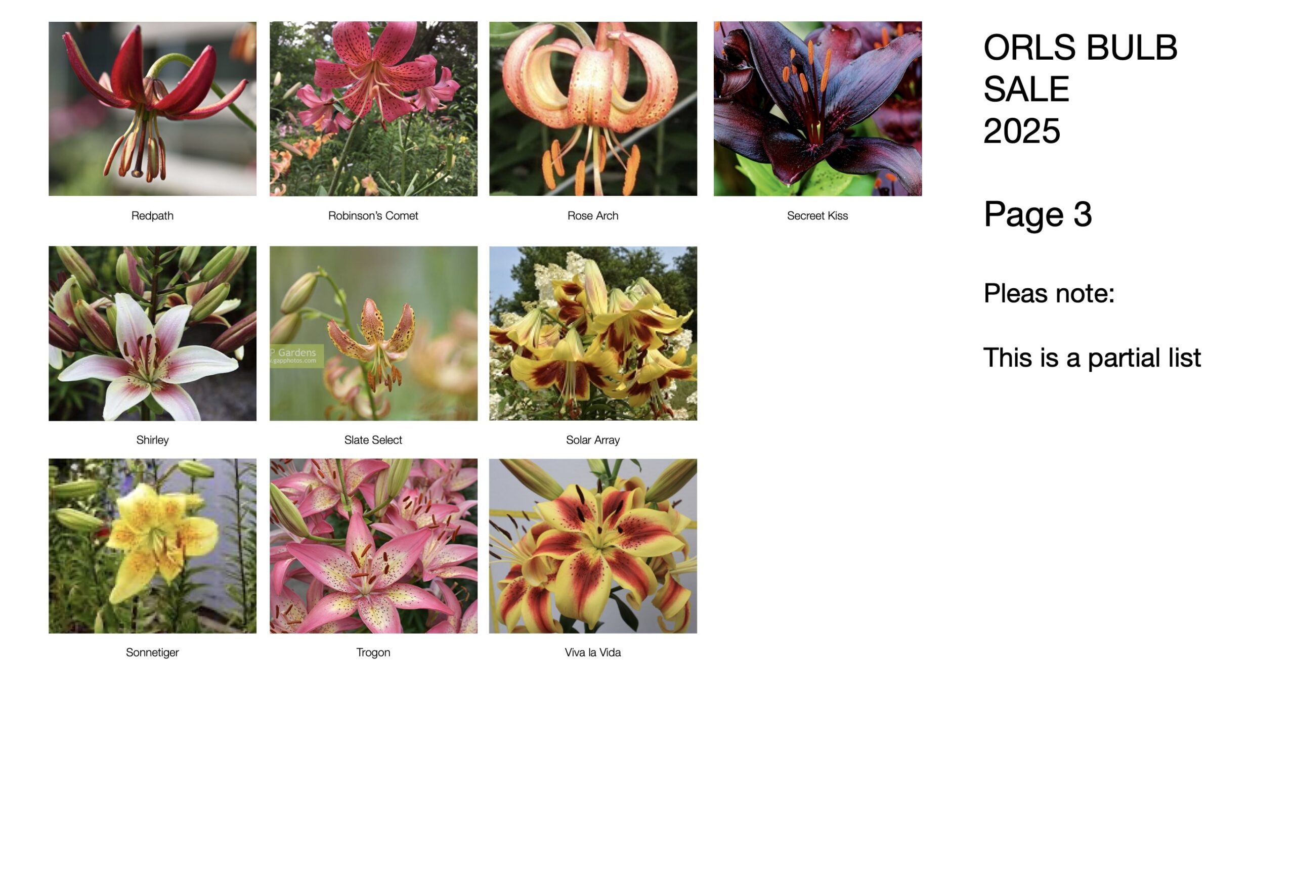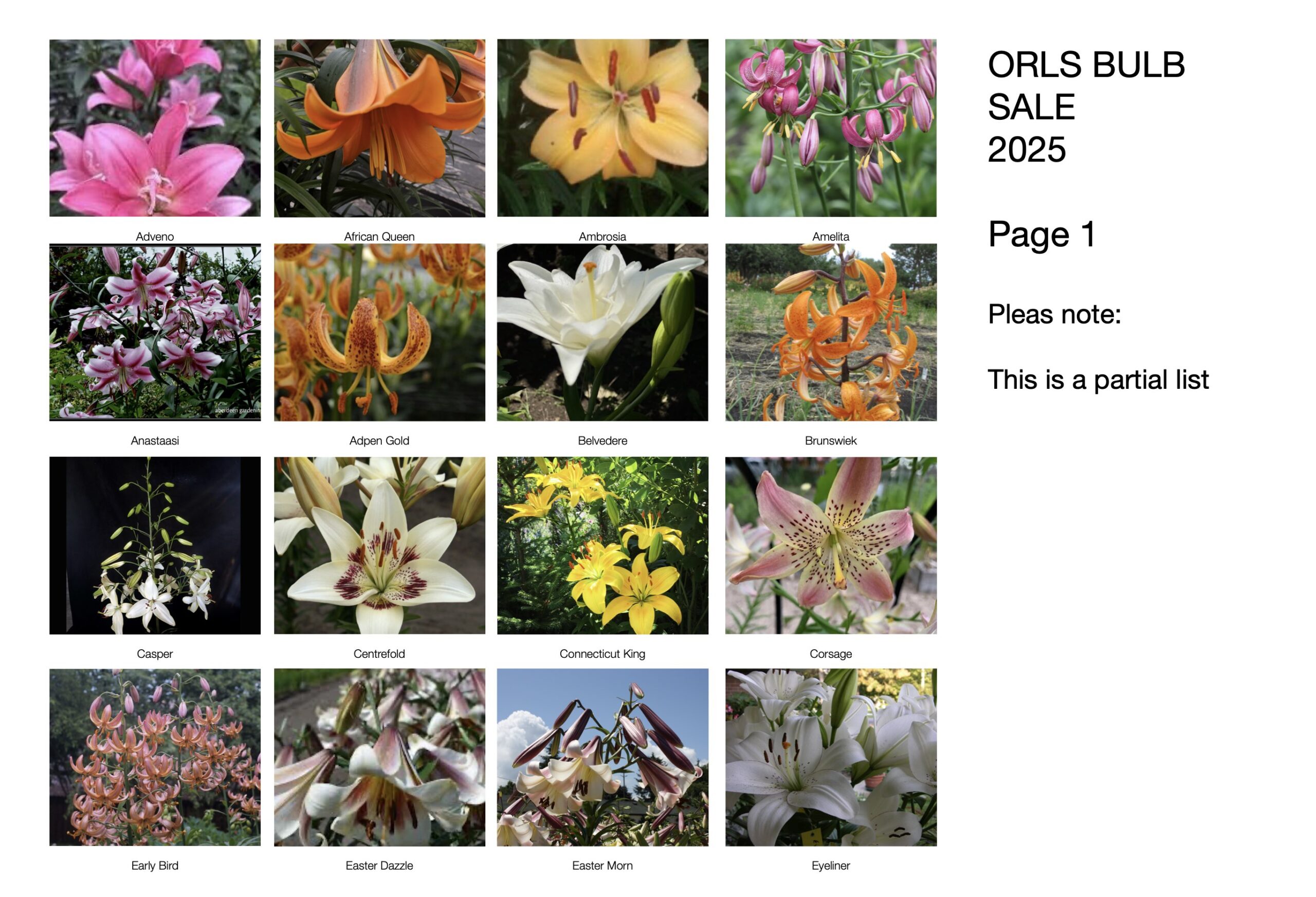 The bulb sale is in person on Sunday October 19, 2025 in the Cafe Annex of the RBG between 12 and 3 pm. Bulbs are of the highest quality from quality growers.